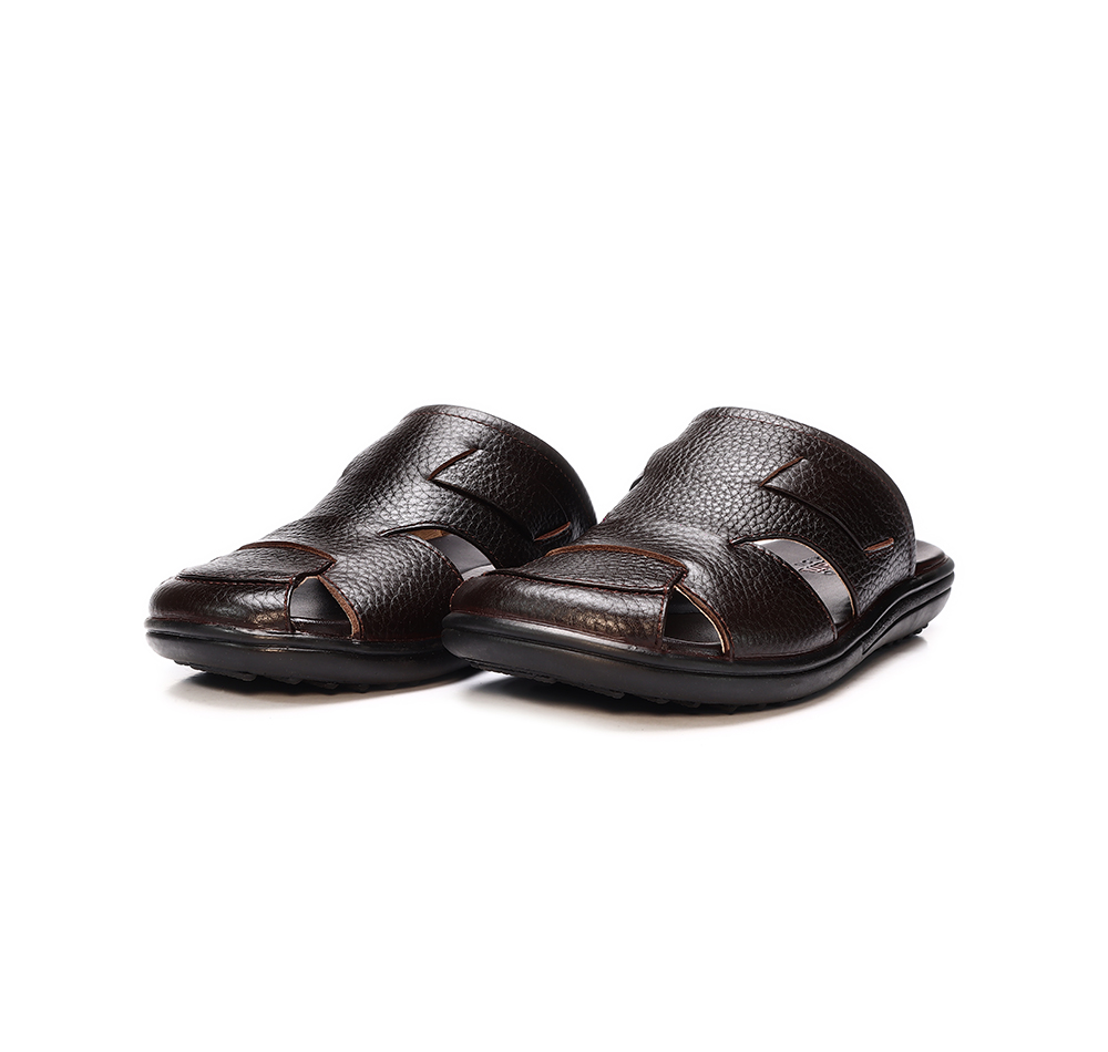 Chất liệu Quai mũ da bò, lót da mềm mại. Đế cao su tổng hợp TPR chống trơn trượt. Phụ liệu chỉ dù chắc chắn, keo dán nhiệt bền bỉ không bong tróc, đệm mút EVA êm ái, KP tăng độ đàn hồi dẻo dai khi sử dụng.